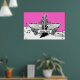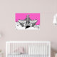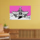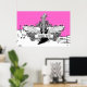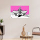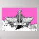 Svartvit elgitarr med vingar poster utskrift, med ett elektriskt gitarr, vingar, flammor och snurrar på musikpentagram, anteckningar och tredubbel klyva på shock rosa bakgrund. En underbar gåva till en musiker, gitarr eller älskare.