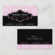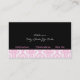 Svart rosa, vitt affärskort från damm i insida, med ett rosa och vitt dammmönster. Grund är av fast svart färg. En svart och en rosa rand skiljer de två delarna åt. Ditt företag/namn är skrivet på en elegant svart ram med vit och rosa kontur.