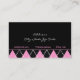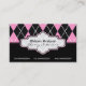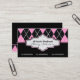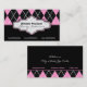 Svartvit rosa trendig med affärskort, med en rosa och vit argyle mönster. Grund är av fast svart färg. En svart och en rosa rand skiljer de två delarna åt. Ditt företag/namn är typat på en elegant dammketikett med svart och rosa kontur. Den nutida utformningen, som har en känsla för sig själv, kan användas för många fält, t.ex. insida, frisyr, mode och mycket annat.