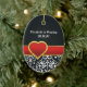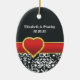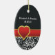 Svartvit rött hjärta bröllop spara datum julgransprydnad keramik