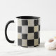 En stilfull rutig svartvit mugg som är designad vid Joan Rudloff. Har både ett land och Contempory stil