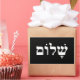Enkel textdesign som säger Shalom i hebreiska. Vitt teckensnitt på svart bakgrund. Du kan ändra bakgrunden till färg.
