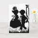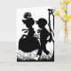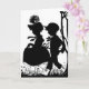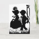 Silhouette svarta och vita barn som går i gamla kläder genom parken träd