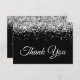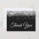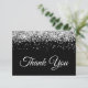 Skapa ditt eget modernt stil sweet sixteen-tack för henne. Faux sparkly silvery glitter top kant parad med en anpassade svart, fast färg bakgrund. Hela struktur i i form av skal, gnistra, metall och glitter skapas med en tryckt digital grafisk bild. Teckensnittet stil och färg kan anpassas. Anpassa för att skapa dina egna platta tackkort efter dotterns 16:e födelsedagsfest.