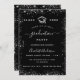 En modern inbjudan till studentfest av elegant. En svart bakgrund med faux silver glitter damm. Anpassa och lägg till namn, år och detaljer.