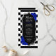 Menykort. Blankt svart royal med faux glitter silver. Har svart och vitt rand med blått ro. Perfekt för en elegant party.