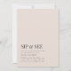 Vi presenterar vår elegant "Sip and See"-partiinbjudan, perfekt för att fira din lilla i stil. Med en mjuk beige bakgrund placeras ord "Sip and See" på ett genomtänkt sätt i det lämnat hörnet i grund, vilket lämnar tillräckligt med utrymme nedan för att du ska kunna anpassa händelseinformationen. På motsatt sida, en enkel men modern svart och beige regnbåge. Oavsett om du skickar digitalt inbjudan eller beställer tryckta versioner till e-post, erbjuder den här designen en tidlös, varm känsla för din speciella insamling.