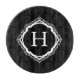 Glass skärbräda för runda med en beställnings- svartvit monogramdesign.