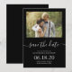 Enkla Modern Script personlig-fotokort i Bröllop spara datum. Om du vill ha en mer avancerad anpassning av den här designen klickar du på knappen Anpassa! Matchningsalternativ och fler alternativ för färg finns också på begäran.