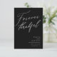 Perfekten tackar er för minimalisterna par! Med "Forever Thankful" i ett calligraphy-skriptteckensnitt för chic med namn och detaljer i en serif-typografi i grund högernas hörn. På baksidan finns en fotokollage placerad ovanpå en lätt grått-bakgrund som du enkelt kan anpassa! Den här produkten är en del av vår "lyckligtvis alltid efter"-svit i bröllop.