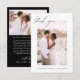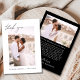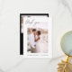 Visa din tacksamhet med elegans med det här svarta vita skriptet Photo Bröllop tackkort. Med en klassisk svart- och vit färg-palett, flytande skripttypografi och utrymme för ett favoritfoto från bröllop är den här designen perfekt för moderna, minimalistiska eller formella bröllop-teman. Anpassa det med namn och ett uppriktigt budskap för att skapa en förfinad och minnesvärd glädje som era gäster kommer att ta hand om.