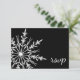 Anpassa OSA Response Card för elegant Black and White Snowflake Winter Wedding med svarsdatum för dina nyårshögtalare i december, januari eller februari. Den här festliga anpassningsbarna wintery r.s.v.p.-kortet har en kompakt vit snöflingdesign på en svart bakgrund.