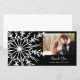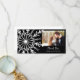 Anpassa det festliga Tacken Snowflake Winter Wedding med fotopatkort för svartvita snöslingor med ditt personliga tack, tacksamhet, uppskattning och bild. Lämplig för använda för gåvor som tas emot efter vintern möhippa eller giftermål-temat i din klass december, januari eller februari. Den här anpassningsbarna är ett varma tack för att du har ett solkort med en kompakt, vit snöflingdesign mot svart bakgrund.