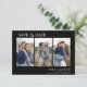 Modern och Elegant liggande Vågrät tre (3) Foto Spara datum Bröllop med handskript, skrivstil. Datuminbjudningsmagneten innehåller skripttypografi och chic och enkel design som du kan lägga till ditt anpassade förlovning-fotografi bild till.