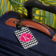 Svartvit sparre med shock rosamonogramen bagagebricka