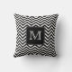 Monogramdekorativ kudde med det svartvita sicksackmönster. Ändra monogramen till ditt eget. Initial inramade i svart kvadrerar med den tunna vitgränsen
