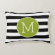 Svartvit stripe Mönster Grönt Monogram Prydnadskudde