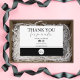 Anpassa det här tackkortet till ställe i dina beställningar. Enkel svart och vit design med skripttext. Byt ut logotypen och kontaktinformationen för att anpassa den. Bläddra i butiken för fler företagsprodukter och mer i den här designen.