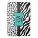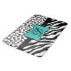 Lägg till stil i båt, kök eller annat rum med den här personligen för matta med ditt monogram först. Detta sofistikerade svarta och vita med grått- eller grått zebra och leopard-tryck mönster gör att ett trendig blir synligt för din hemdekoration. En turkotisk tealblåemblem lägger till en popo från färg och skapar ett anpassningsområde med ditt monogram. Färga skinsar av zebra ränder och leopard eller cheetah för grafisk design är en av de varmaste konst- och designtrenderna och är extremt populära från mode till hemsdeka. Matta är fullt ut anpassade. Gå vild med de här vildens skinsar design!