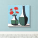 Canvas i ett modernt, Boho stil, minimalistiskt illustration av två svarta och vita vas med röda blommor