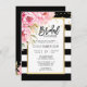 Trendig och moderna redigerbara mallar - inbjudan till möhippa i vitt och svart rand. Faux guld ram med rosa blomma i hörnet. All text kan redigeras och ändras, teckensnitt, färg och storlek. Kontakta designern om du vill ha andra variationer eller hjälp.