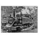 Ett svart och vitt foto av ett vackert återskapat gammaldags ångmoffel från tåg och fakturera vit rök från röksäcken när den färdas längs rälsspåren. Detta lokomotiv kallas "Puffing Billy" och är en populär turist attraktion i Dandenongbergen nära Belgrave i Victoria Australia.