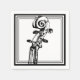 Svart och vit design av en violin-rulla som ramas av svarta konturer. För violinister eller musik älskare!
