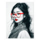 Svart och vit Porträtt-konst av ett asiatiskt Dam med selektivt färg-rött läppar och glas
