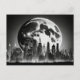 Ett stort fullt måne-vykort med svart och vitt liggande framför ett fantasi.