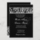 Den här designen med svart och vitt zebra tryck som söker sig bakifrån en svart bakgrund blandar contemporary och klassiskt inslag, och gör en inbjudan till elegant bröllop.