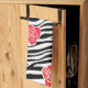 Svartvit Zebra mönstrad + röd ros Kökshandduk