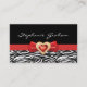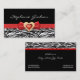Svartvit zebra tryck med röd båge och juvel visitkort