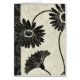 © Daphne Brissonnet/vild Apple. Oavkortad blom för tre blommor, i svartvitt. Avbilda har en blom- mönstrad bakgrund i ett benvitt att skugga och svärta på vänster sida.