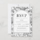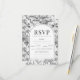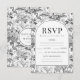 Fintvätt av romantisk svartvit chinoiserie porcelain boho arch blommönster klassisk bröllop-responsOSA kort med brid och groom monogram på baksidan.