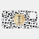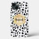 Snyggt Dalmatien spottar mönster med en faux guld-folieetikett med anpassade namn och monogrammallar. En söt, monogrammad iPhone 13 fodral med svarta och vita fläckar mönster och guldfärgat inslag. Om du vill ändra teckensnittet färg och font stilar klickar du på "personalize" (anpassa) och klickar sedan på knappen "custom more" (anpassa ytterligare).