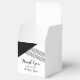 Moderna och trendiget Geometric Rand Wedding Favor Boxes med en svart triangel och tunt strimlad accent. Dessa enkla men ändå enkla rutor för elegant har ställts in för att enkelt kunna anpassas med din bröllop-information. Hitta fler anpassningsalternativ genom att klicka på Anpassa.