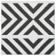 Stilfulla geometriska tygsärdrag som växlar svartvita sparrar. Periodvis konvergerar några sparrar för att bilda att växla vit, och svartdiamanter i denna sätta en klocka på det grafiska mönster.