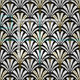 Digital reproduktion av en klassiker, art décotapet, fläktmönster - vit på svart tyg som förskönas med guld