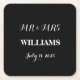 Svartvitt, enkelt skript, minimalistiskt Bröllop Underlägg Papper Kvadrat