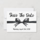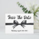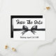 Modern svartvitt Spara datumkortet med elegantens bockdesign och anpassadets foto. Ett tidlöst sätt att tillkännage er bröllop och er kärlek-historia i stil.
