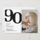Skapa varaktiga minnen på din 90-årsfest med dessa klassiska svart-vita födelsedagsinbjudningar! Med en stor, fet serifstil som visar siffran "90", ett foto av födelsedagsbarnet och en modern mall som är lätt att anpassa, kommer dessa inbjudningar att fånga stämningen under tillfället. Med sin unika design är dessa enastående inbjudningar säkra på att få dina vänner och familj att bli upphetsade inför en oföglig fest.