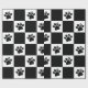 Vågräts svarta och vita markerade bakgrund och svart tass avtryck i vita fyrkanter. Det finns ett litet vitt hjärta i varje avtryck