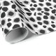 En uppdaterad take på ett klassikerleopardtryck - leopardfläckar i traditionell svart med silvergrå färg på en vitbakgrund