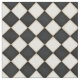 En mönster av svarta och vita diamanter med tryckt skuggning och en vintage känner sig. På denna är varje diameter ungefär 1" x1"