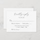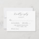 Komplettera din svarta och vita bröllopsfest med den här elegantens kalligrafi-OSA kort med önskat svarsdatum och anpassningsbarnas godkännande/avslagstext. Inbjudan gäster som vill ange sina favoritinställningar och lägga till val av anpassningsbar måltid. Matchande objekt är tillgängliga.