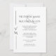 Vackert svartvitt bröllop med mjuk flytande elegant typsnitt. Anpassa med din händelseinformation och lägg till initialer i monogram på sidan för att få en vacker beröring. Perfekt för vilken säsong som helst bröllop.