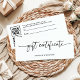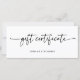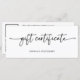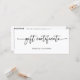 Det här moderna, svarta och vita presentcertifikatet har elegant handskriven skripttypografi. Du kan lägga till logotypen och en QR-kod på baksidan om du vill ha ett enkelt utseende, en snyggt och en professionell.