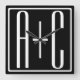 Svartvitt | Par Initialer Fyrkantig Klocka