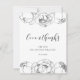 En svart och vit elegant med vackra ponnyer, perfekt för en chic och ett modernt bröllop. Fullständigt anpassade: Du kan enkelt ändra färg i texten eller blommorna till kostym.