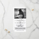 Det här svarta och vita fotomeddelandet i bröllop spara datum har en vintage, gammaldags känsla med gammaldags brev-design, inklusive utvecklad inslag, en dekorativ banderoll, stjärnor och ett snabbt ampersand. Inbjudan till finare inspireras av både vintagens utformning och snyggtens poster. Texten lyder: "Du är inbjuden till bröllopsmottagningen för [anpassade namn] och [anpassade namn] [anpassadets datum] [anpassadets tid]. Gå med oss för ett oförglömligt Firande". Anpassa inbjudan ytterligare med mottagningsinformationen och adress, i rutan med prickat gräns. Den här bröllop-svit är perfekt för alla som tittar för visuella, historiska, vintage eller unika bröllopsinbjudningar som endast är avsedda för mottagning.
